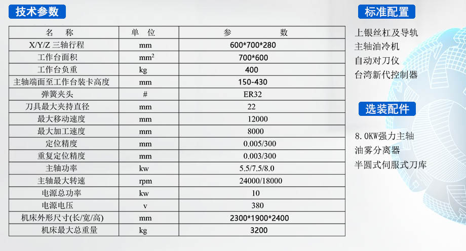 | 主軸功率 | 7.5kw或5.5kw |